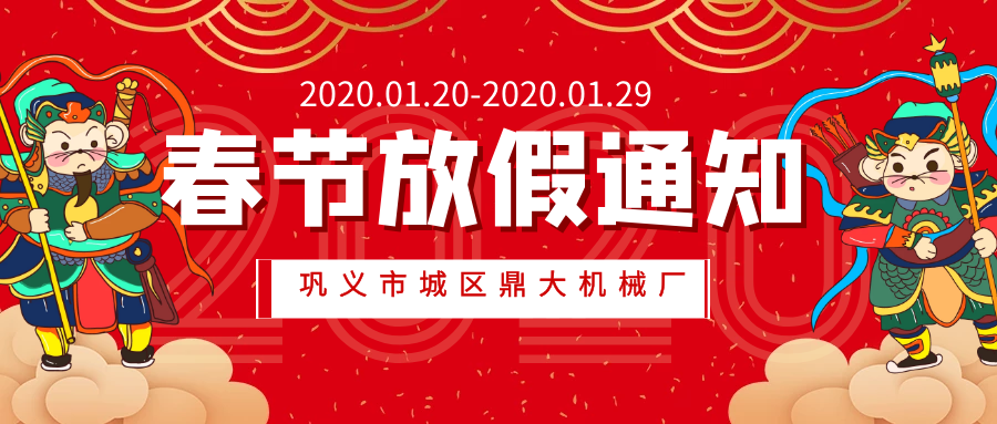 ? ? ? ?金猪摇尾辞旧岁,玉鼠探头迎新年。在这里,鼎大对辊破碎机厂家给大家拜个早年,感谢朋友们一直以来对我们巩义市城区鼎大机械厂的支持与厚爱,恭祝大家在2020年里身体健康,工作顺利,阖家幸福,万事如意! 展望未来,鼎大希望与您一起携手共创美好明天。